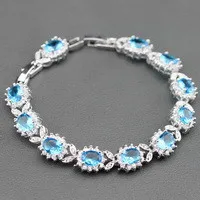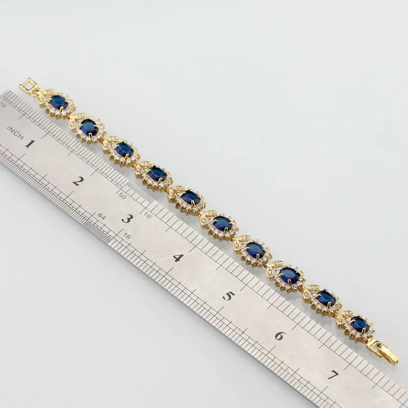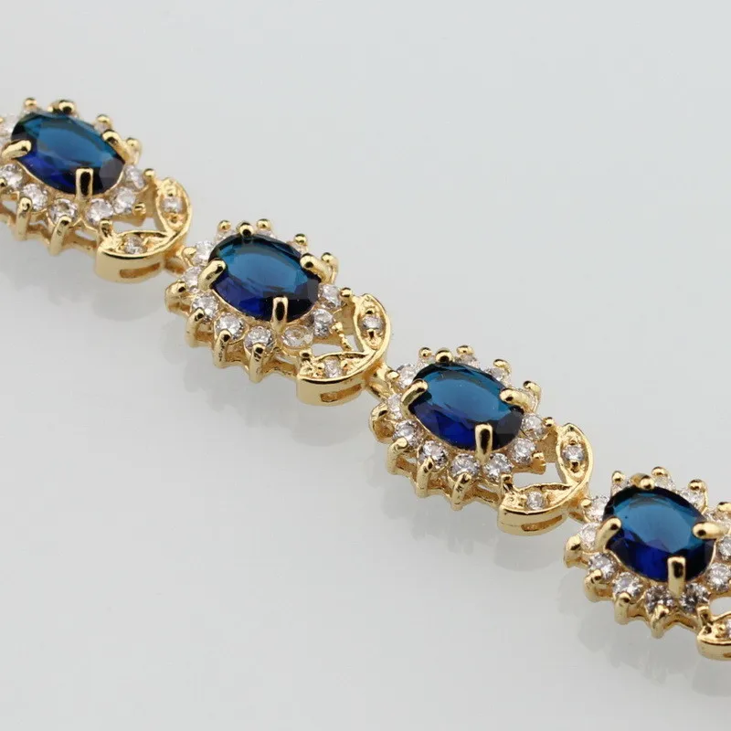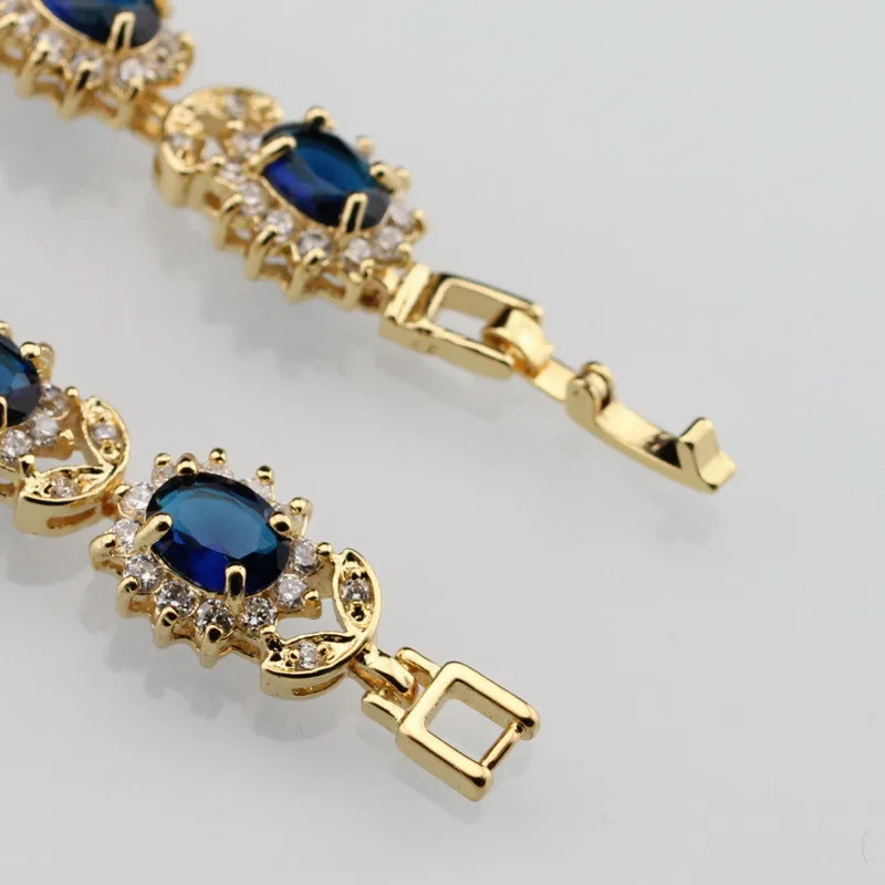 12-Colors African Women Wedding 18K Gold Plated Jewelry With Blue Stone Female Bracelet Bangle Adjustable Length 18+3 CM