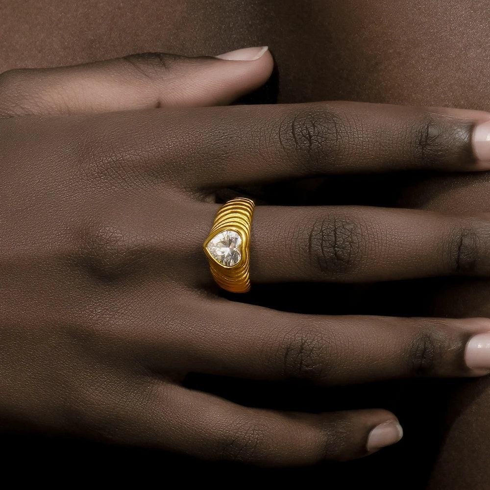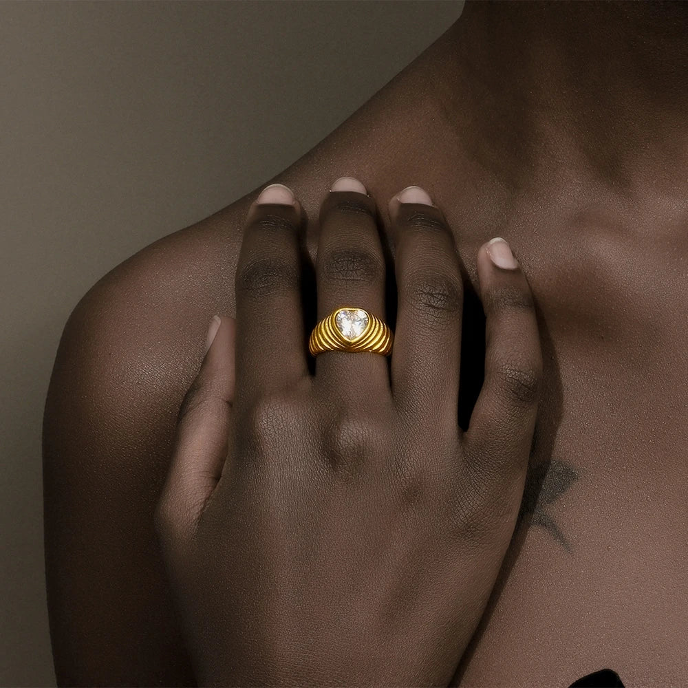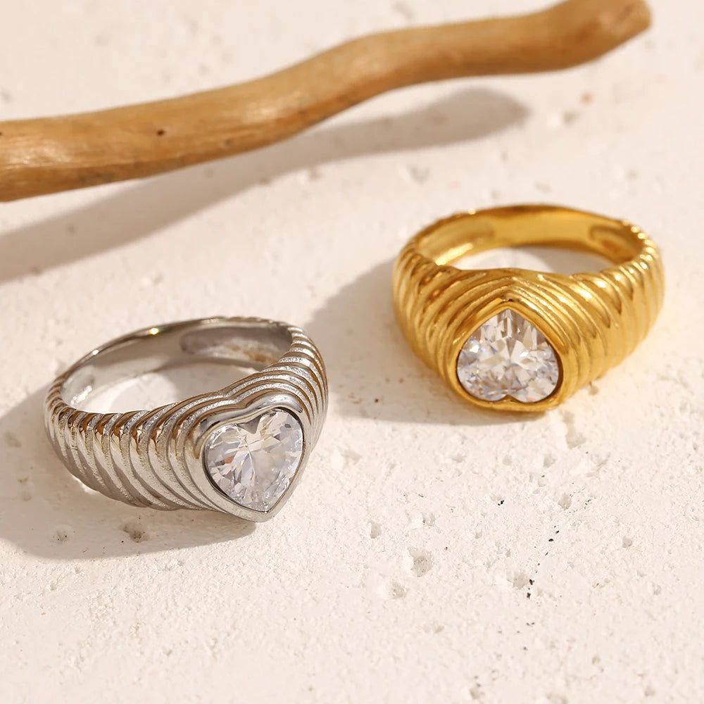 MamacitaSlay New Trends Classic Heart AAA Zircon Wedding Rings 18K Gold Plated Stainless Steel Jewelry Women's High Quality Gift