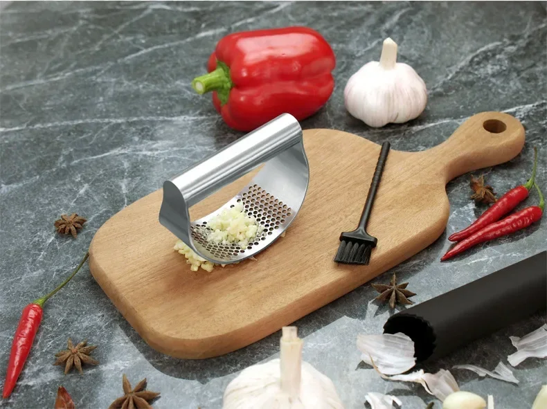 Multi-function Manual Garlic Press Curved Garlic Grinding Slicer Chopper Stainless Steel Garlic Presses Cooking Gadgets Tool